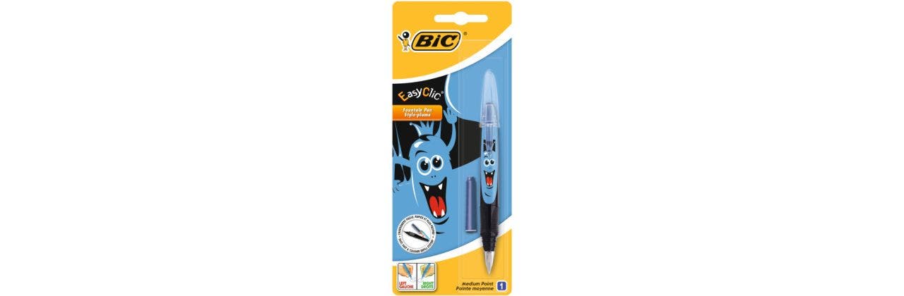 Paré d'un beau décor monstre, ce stylo-plume BIC EasyClic fera le bonheur des enfants. Sa plume moyenne en acier inoxydable résiste à la pression sans se déformer. Elle est donc idéale pour les rédactions, dictées rapides et autres prises de notes à l'école. Doté d'un grip triangulaire, ce stylo-plume facilite le positionnement des doigts et convient aux droitiers comme aux gauchers. Grâce à son système de recharge latéral innovant, vous pourrez le recharger en toute simplicité avec des cartouches universelles courtes