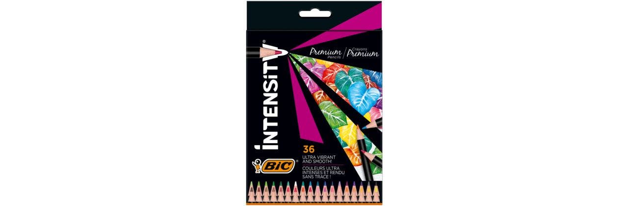 - Nouveaux crayons de couleur en bois Premium BIC Intensity pour adultes : 36 couleurs vives qui donnent vie à vos dessins
